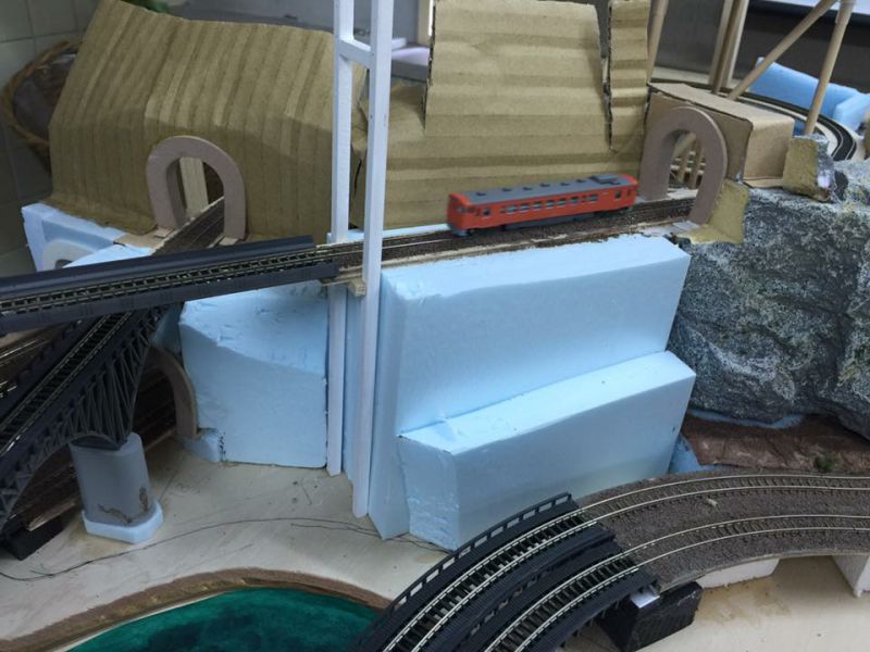 ・トンネルポータルの固定と周辺の地形づくりを進めた。