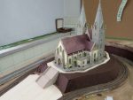 ・右側の終端駅の駅舎とホーム屋根(ドーム)の一部を、kashyさんが作ってきてくださいました。駅舎をどこに置き、下のホームとの関係をどのように処理するかについて検討しましたが、様々なアイデアが出て決定には至りませんでした。