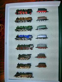 高価なZは社会人になってからにしましょう(笑) (管理人) 番外編 こんなオジサンその1 このガラス電車いいなぁ!の図。 注意:番外編その1~3の写真はあくまでも参考資料であり本文とは一切関係ありません。(ホンマかいな?) こちらは新潟から駆けつけてくれたヨロレイさんです。少々遅れて到着されたので、お酒も料理もみんなに追い付いてようやく一息されてガラス電車に見入る様子です。。(管理人) 番外編 こんなオジサンその2 DSにニッコリ!の図 メルクリンHOの運転会に参加されるために関西までやってきたしっぽしゃっぽさんです。こちらにも参加していただきました。TCM.Z製のシトロエンDSです。(管理人) 番外編 こんなオジサンその3 もじゅ~るぅ!の図。後ろのお姐さん 『…ヒソヒソ…お隣のお客はんたち 変わってはりますけど 危害は加えまへんので 心配いりまへんどすぇ~ ムニャムニャ…』 その3 お楽しみはお座敷で 楽しい時間は@いう間に過ぎていくもので気が付けば8時を回ってしまい床はお開き。追い立てられる様につづきはお座敷で、JAMならぬZAMの第1回京都鉄道模型コンベンションのはじまりはじまり。ディープな夜が開花するのでありました。 8人でそれぞれいろんなものを持ち込むとすごい量でしたね!みなさん、あっという間に部屋いっぱいに広げてしまいました。。(管理人) その4 食いつき抜群 入れ食い状態 お座敷に入ったオジサン達は各々の荷物をゴソゴソ餌撒きをすると、集まる集まるその悲しいまでの性。でもこの好奇心と機動力が日本経済を支え貿易の収支バランスに貢献しているのだぁ!突然Zにしては大きい箱が登場。開けるとそこには、、、、箱の中身は OナローゲージのSLでした。初めてのものには 目が釘付けになってしまいます。 Oゲージナローが見られるとは予想もしていませんでした。それにしてもこの大きさ(Oゲージ)で16.5mmの線路を走るのはいいですね。しかもすべてダイキャスト製でずっしり重量感たっぷりです。これで6万円は安いかも。もちろんDCCでサウンドも出ます。(管理人)
