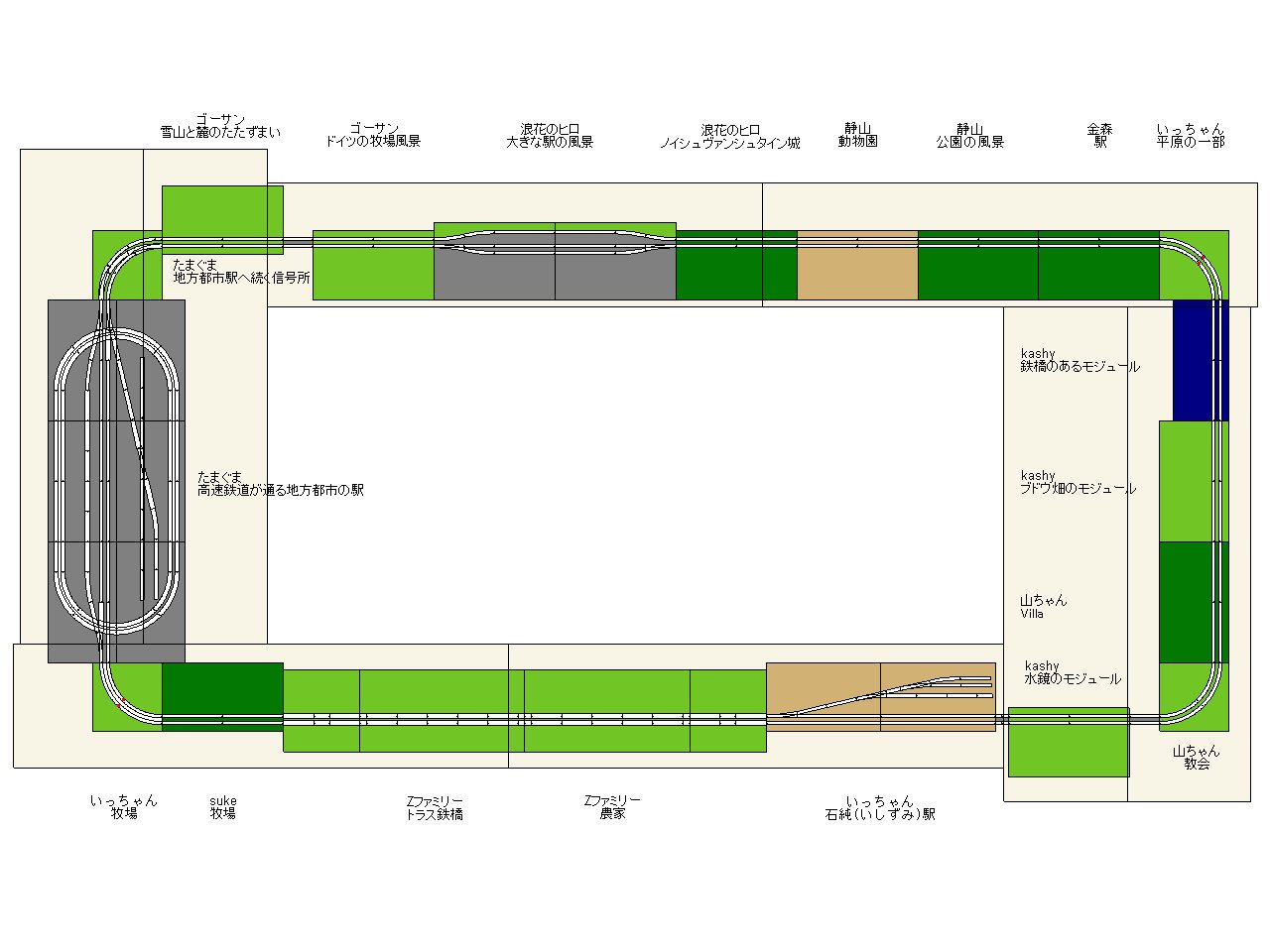 静山:棚田レイアウト(日本型50×34cm)、A5ケースレイアウト(欧州型23×18cm)