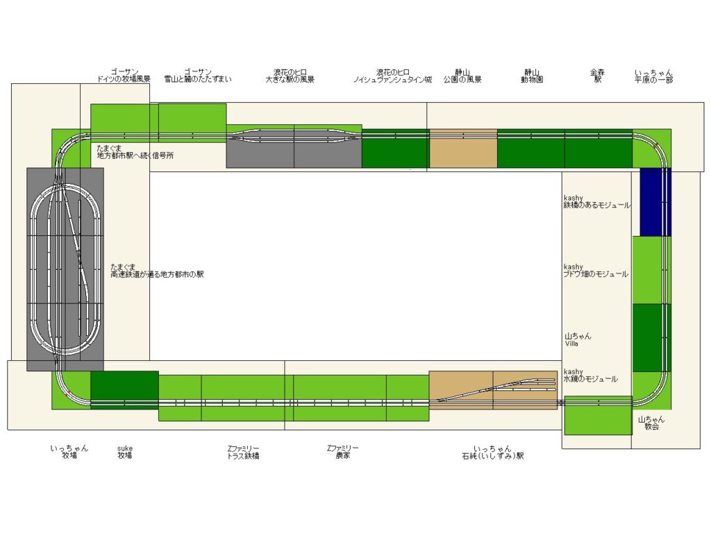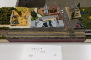 また、コーナーに隣接するモジュールでは脱線が頻出しましたが、これは車両の特性によるのが多いのですが、ポイントを使用しているモジュールを長辺側に配置することや、緩衝用のモジュールを使用することも検討したいところです。